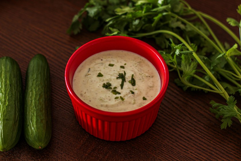 - Add cucumber, mint leaves, coriander leaves, roasted cumin powder, chaat masala powder, ground black pepper and salt. Mix well and your Cucumber Raita is ready.