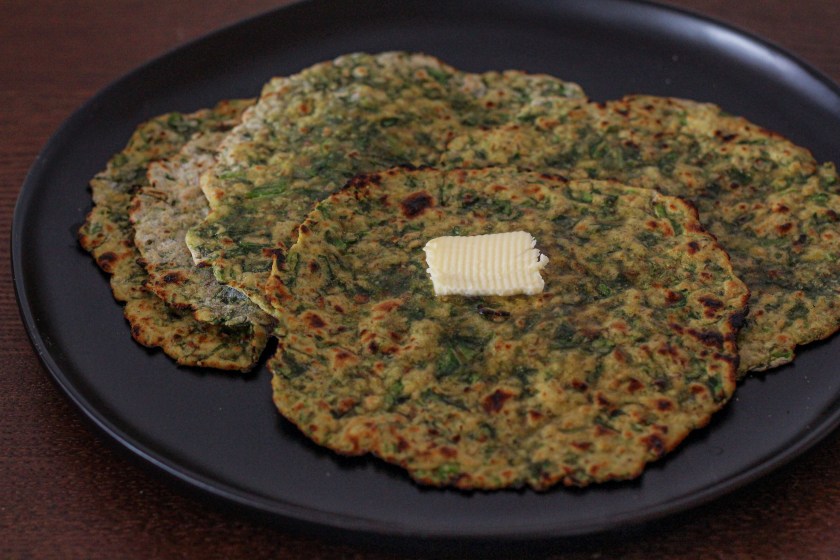 - Remove it from the flame and grease it with ghee. Your Palak Roti is ready.