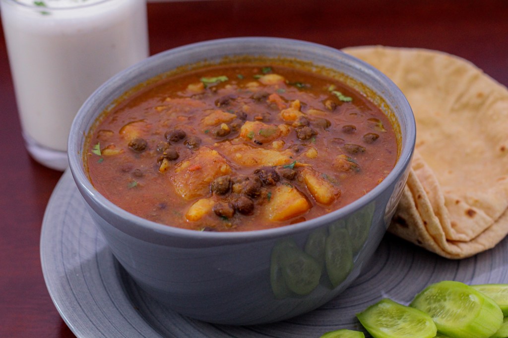 Aloo Chana is a nutritious yet delicious gravy dish, enjoy it with Phulka, Paratha, Jeera Rice or just steamed rice.