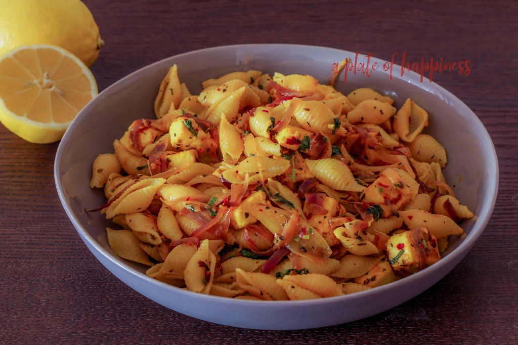The tang of lemon in pasta is delectable, to prepare this lemon pasta you’ll need lemon zest and lemon juice apart from some onions and garlic. I have also added paneer (Indian cottage cheese) and it did do add-on wonders to the pasta, though it is totally optional.