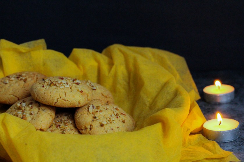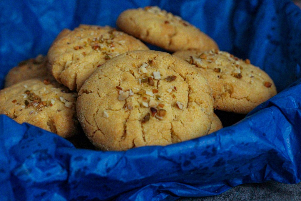 Nankhatai!!! Let’s begin with the meaning,ย it is drawn from the Persian word “naan” meaning bread and the Afghan word “khatai” meaning biscuit, so bread biscuit. To make these you’ll need whole wheat flour, all-purpose flour, gram flour, a little bit of semolina, ghee (clarified butter), sugar, cardamom powder & saffron (for astounding aroma) and some nuts.ย