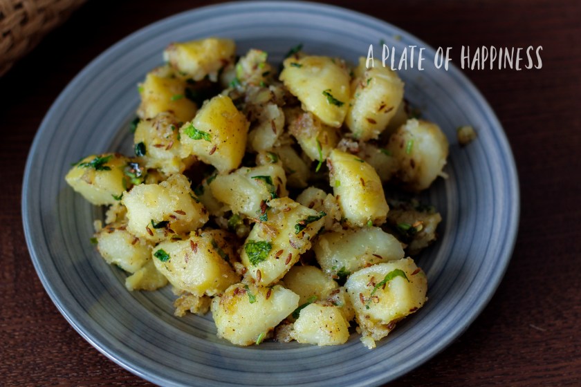 - Add coriander leaves and mix well. Your Saatvik Jeera Aloo is ready.