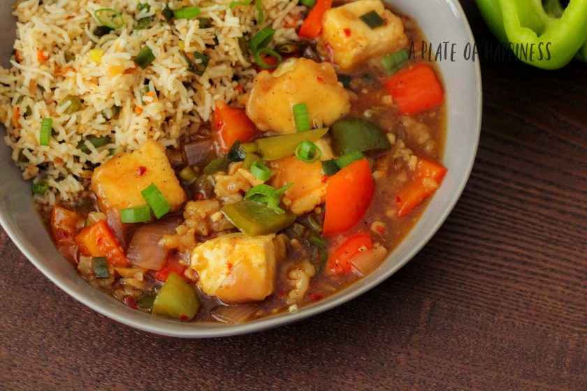 Chilli Paneer is a popular Indo-Chinese dish, usually relished with Fried Rice or noodles or even as a starter. It can be prepared in two ways i.e. dry as a starter or gravy as a main course, this recipe is for making it in a gravy. To make this we fry paneer cubes (Indian cottage cheese) dipped in the batter made with corn starch and all-purpose flour, then make a gravy with veggies and add these fried paneer cubes to it.