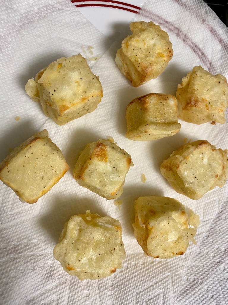 - Meanwhile heat oil in a kadai or a pan to deep fry the paneer. Once oil is hot drop the paneer cubes and fry from all the sides until light golden brown. Drain on a kitchen paper towel, keep aside