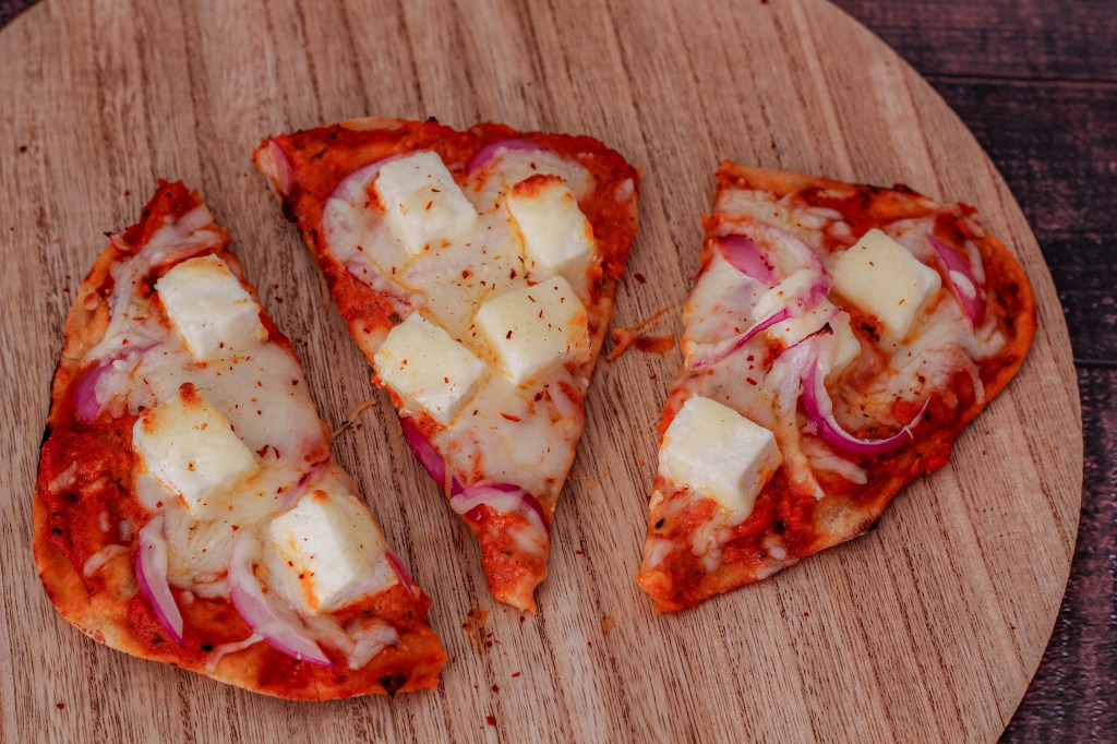 Paneer Makhani and Naan make an appetising combo, when these are topped with some cheese and enjoyed as a pizza it’s delectable, and it’s called Naanza!!!