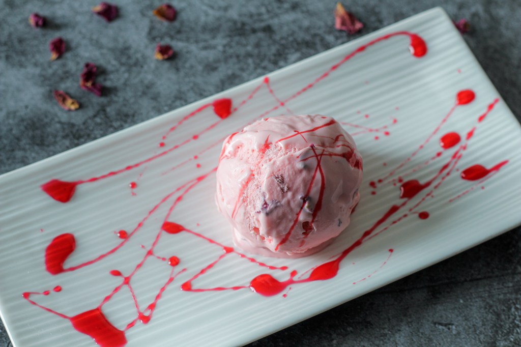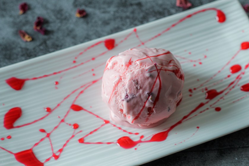 - Transfer it to a freezer safe container and sprinkle some rose petals. Freeze for 8 hours or overnight. Your Rose Ice Cream is ready, enjoy!