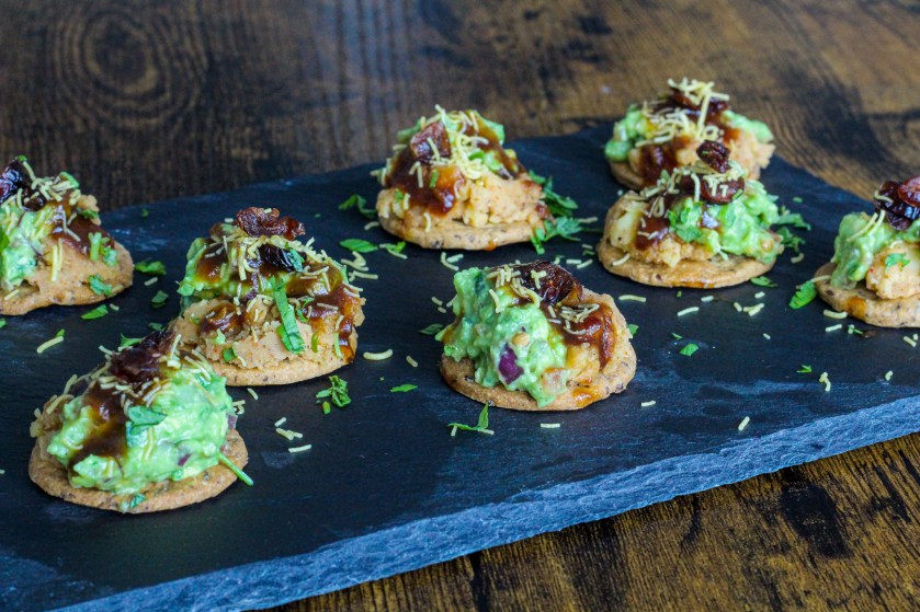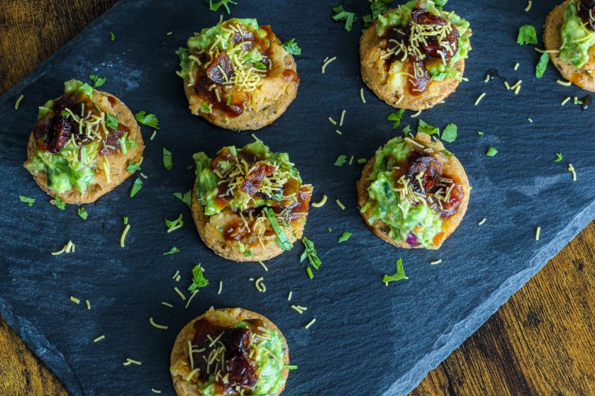 Recently tried this Healthy Sev Puri recipe and in love with it totally, so couldn’t wait to share it here. The combination of flavors in this recipe is absolutely amazing. Homemade healthy papdis are topped to aloo masala, guacamole, tamarind chutney and cranberries. So you can imagine the flavors I am talking about, do try it and share your views. You can follow the recipe for homemade papdis here.