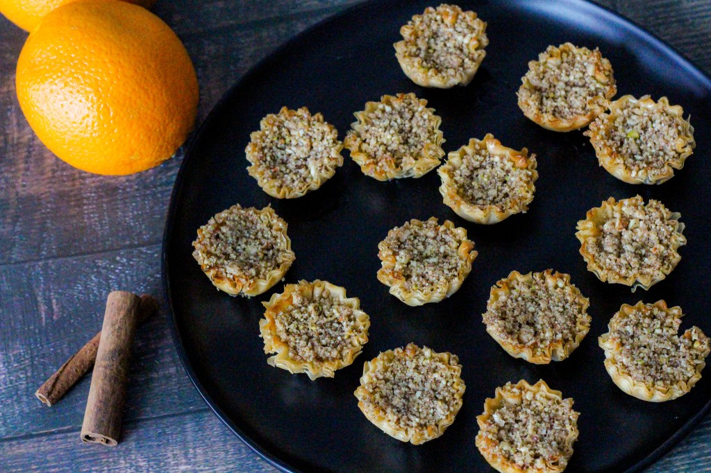 - Place phyllo shells on the baking tray and fill them with the nuts mixture, pat a little with your fingers