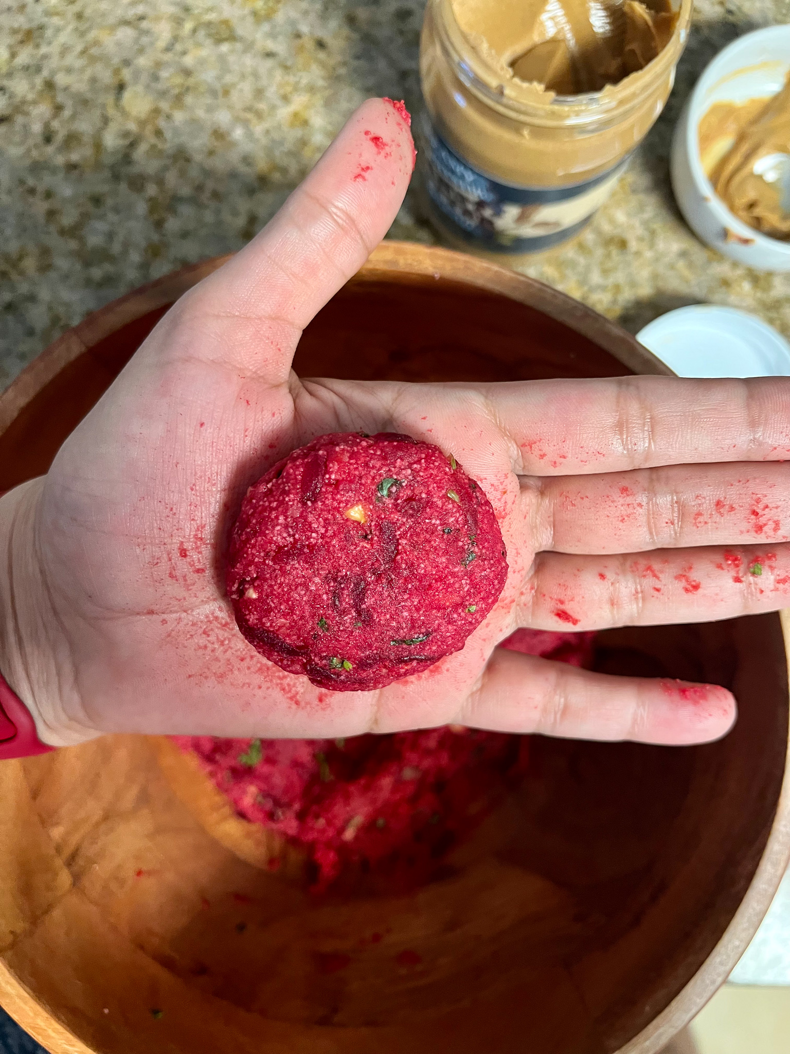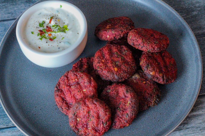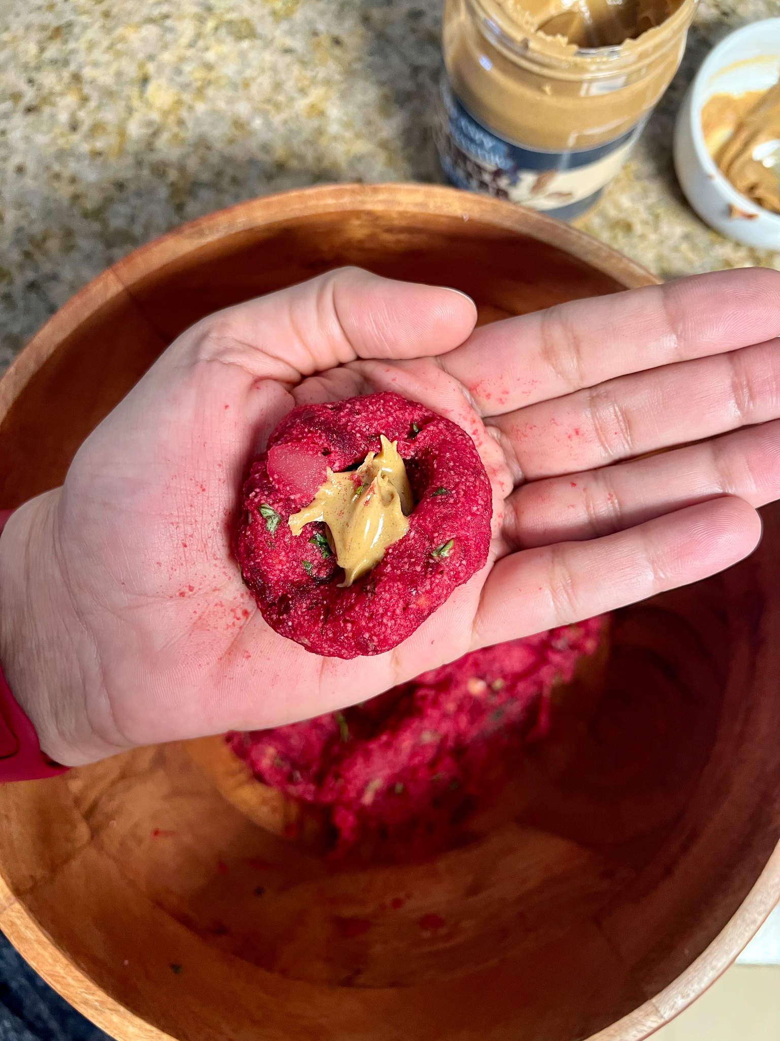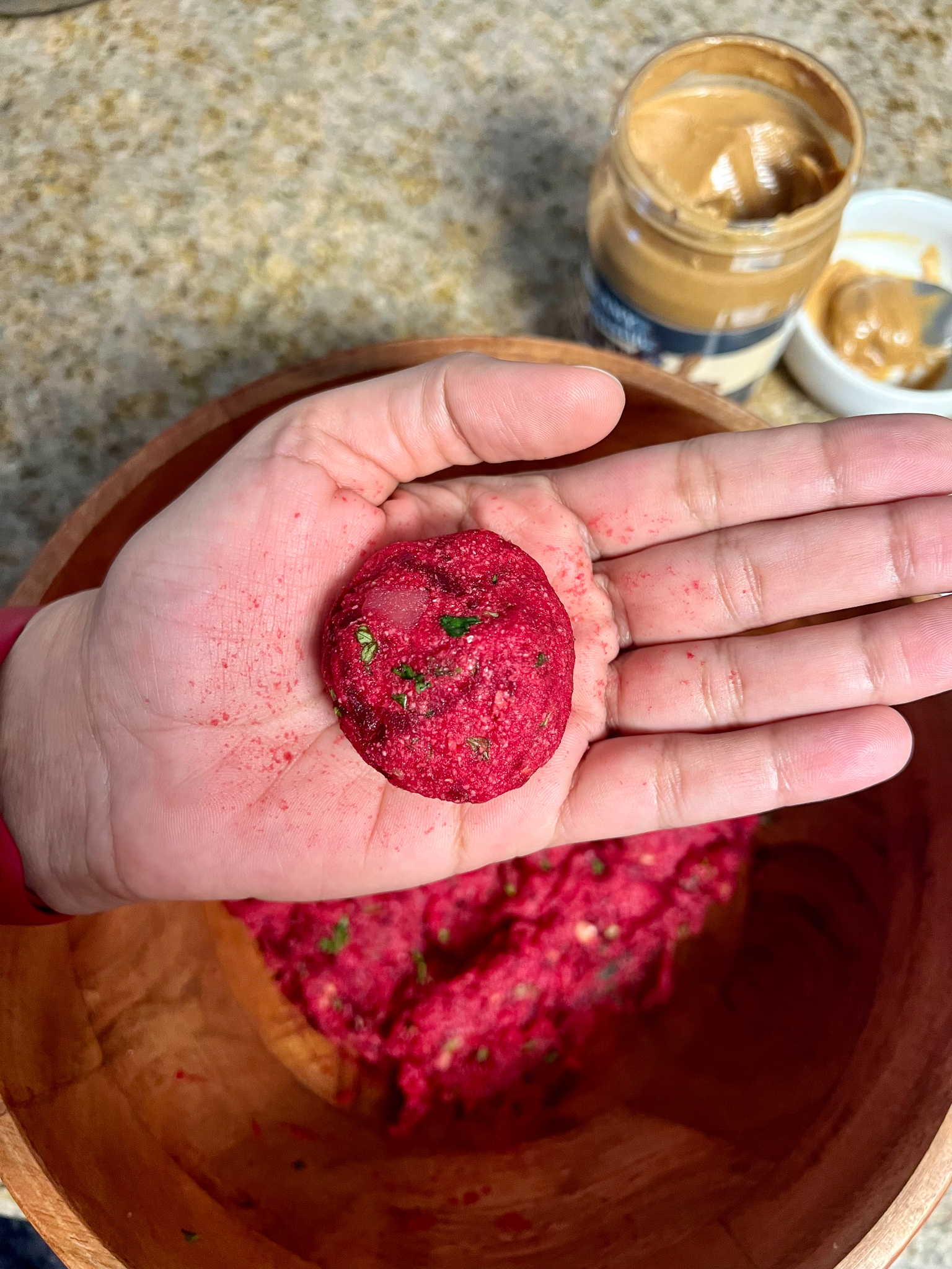 - Your Beet Peanut Butter Bites are ready, relish with Yogurt Sauce.