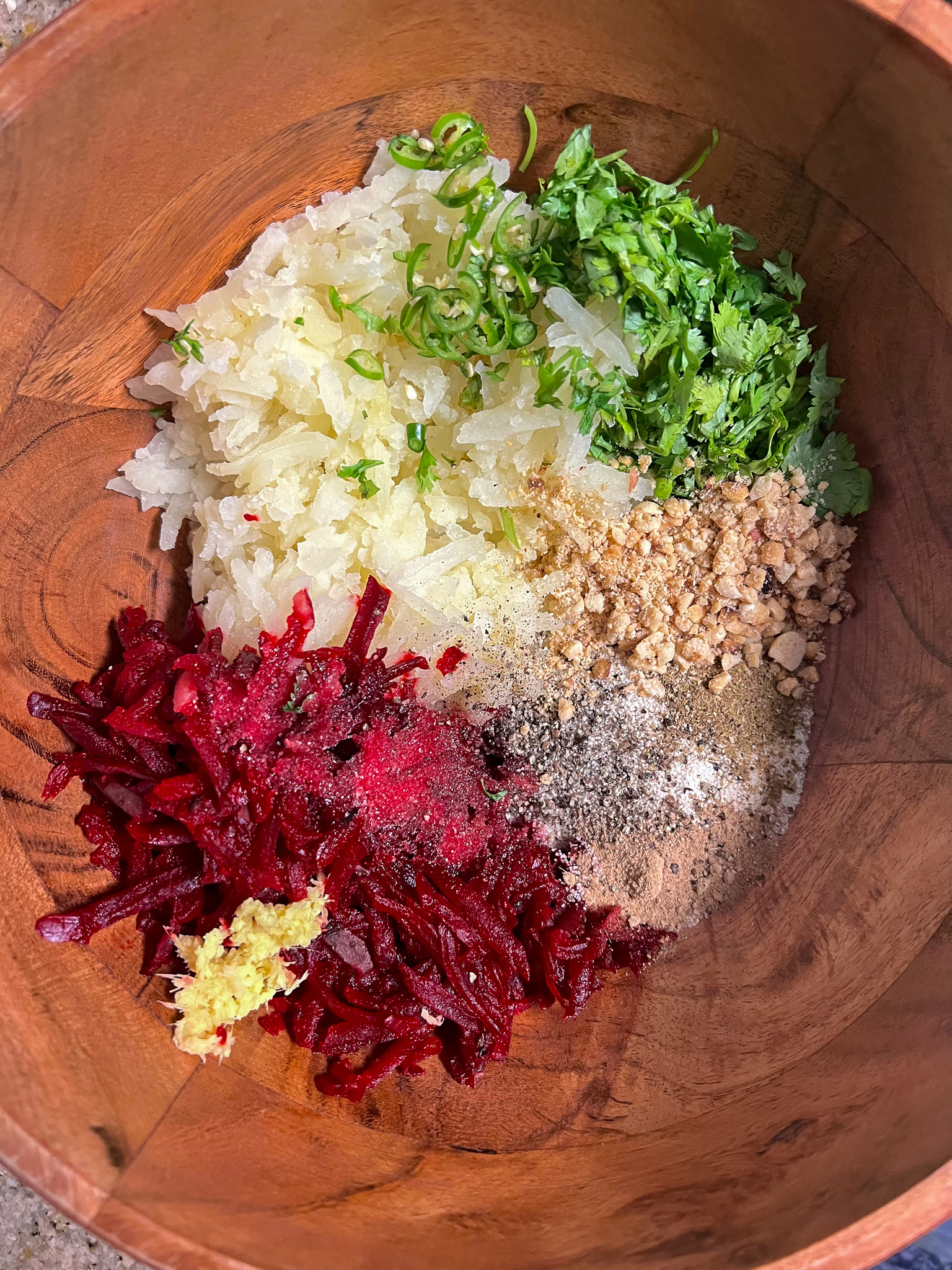 - Boiled Beetroot – 2 small-medium (peeled and grated)