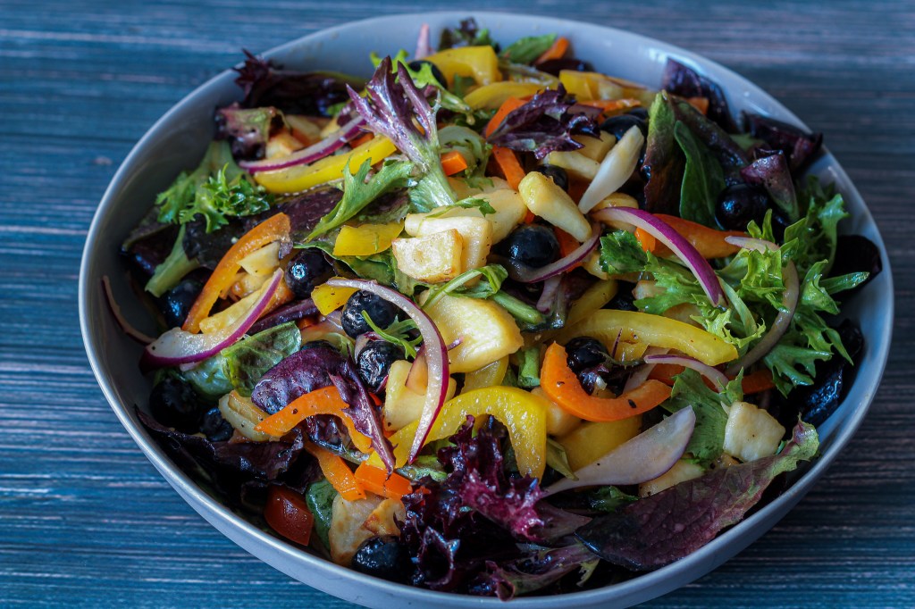 - Your Mixed Greens and Blueberries Salad is ready. Enjoy!!!.