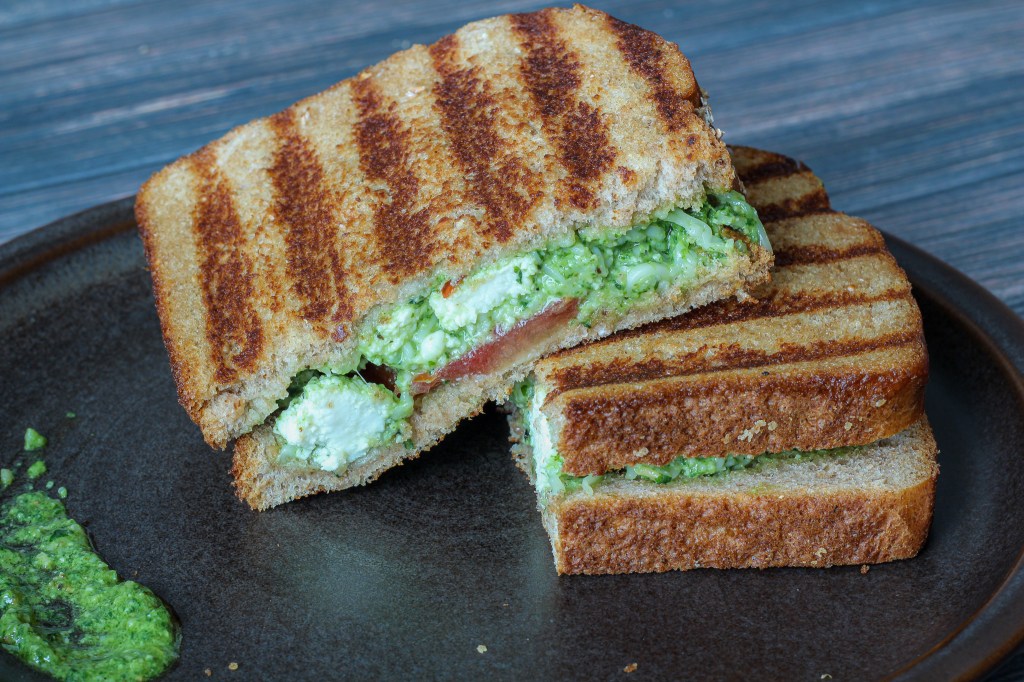 Such an easy sandwich to make for breakfast, lunch, dinner or even as a snack. You can prepare pesto in advance for the sandwich and then it’ll be ready in mins.