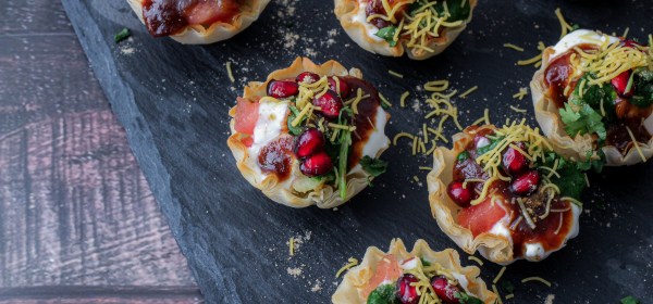 Such a pretty and totally appetizing recipe!!! Chaat cups are prepared using Phyllo Shells. Apart from that you’ll need plain curd, potato, onion, tomato, chutneys