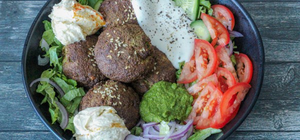 Let’s relish crispy falafels in a salad bowl. This salad bowl is balanced and tasty! Do try… Also try: Mexican Rice Bowl, Mixed Greens and