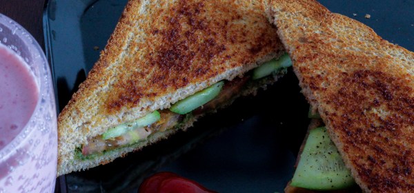 An easy, healthy and tasty sandwich to enjoy in breakfast or as a snack. You’ll need tomatoes, cucumbers, bread, ground black pepper & salt, and