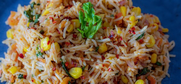 An easy and appetising rice recipe, to make this you’ll need onions, tomatoes and some sweet corn along with a few spices. Also try: Indian Mexican