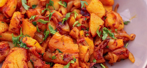 The main ingredients of the recipe are in the name itself, Aloo (Potatoes) and Pyaaz (Onions). This is an easy recipe which goes well with