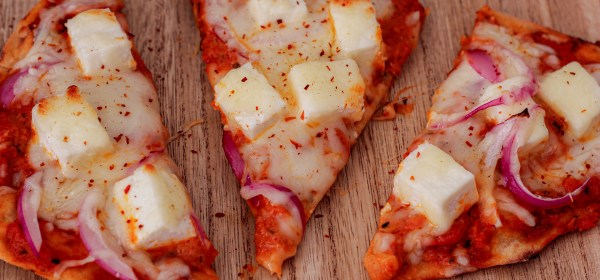 Paneer Makhani and Naan make an appetising combo, when these are topped with some cheese and enjoyed as a pizza it’s delectable, and it’s called