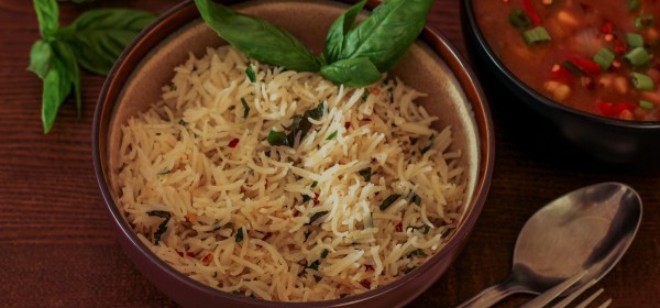 One of the easiest rice recipes with the minimal ingredients is Basil Rice. It has the flavor of fresh basil leaves and sautéed garlic. You