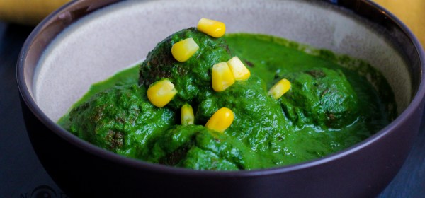 Koftas made with sweet corns, potatoes and a bit of paneer (Indian cottage cheese), then dipped in creamy spinach gravy; yes that’s the thing I
