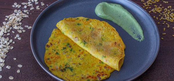 A wholesome and delectable breakfast or snack option, by adding oats to the famous Moong Dal Cheela we make it even more healthier. Batter is